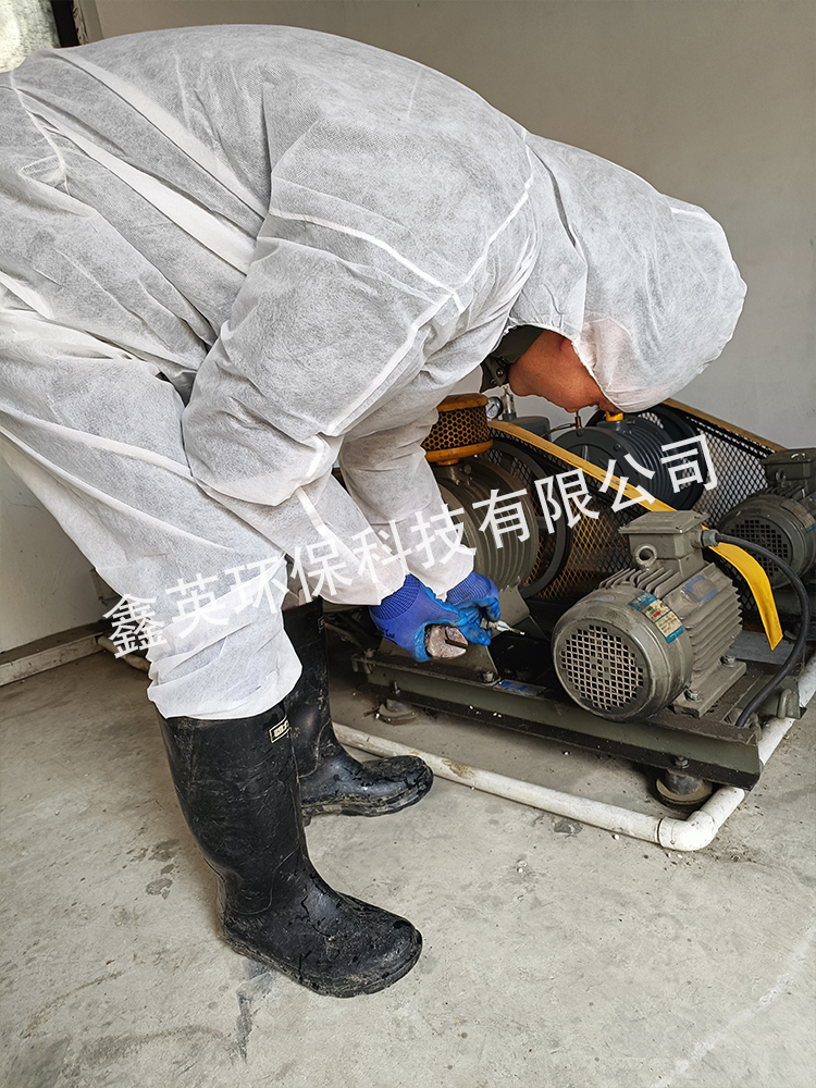 工作人員檢查風(fēng)機(jī)并添加潤(rùn)滑油